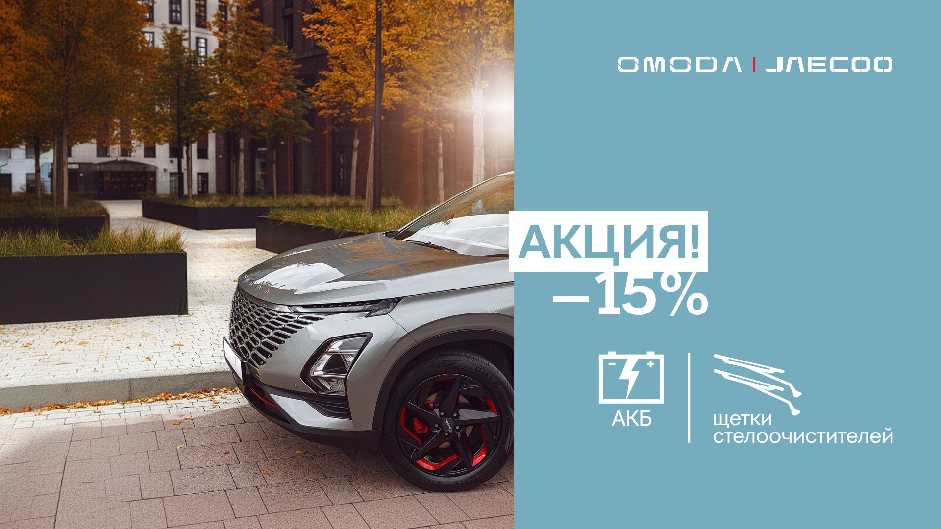 Выгода 15% на оригинальный АКБ и комплект щеток стеклоочистителей! Приезжайте в официальный сервис OMODA Планета Авто!